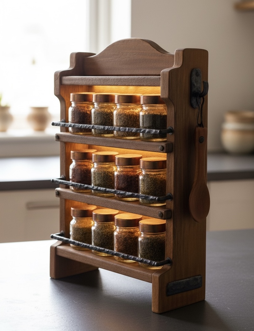 "Rendezd fűszereidet elegánsan! Ez a kézzel készített fűszertartó nemcsak helyet spórol, hanem különleges hangulatot is visz a konyhádba. Egyedi, tartós, és minden darab saját történetet hordoz."